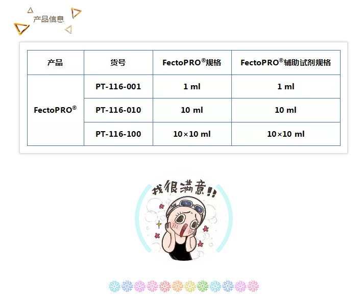 FectoPRO?采用嚴格管控的生產(chǎn)流程進行生產(chǎn)和配置,確保各實驗結(jié)果的高度可重復(fù)性。此外,為了符合現(xiàn)行的監(jiān)管準(zhǔn)則,F(xiàn)ectoPRO?還采用了先進的質(zhì)控流程,包括確保批次間的蛋白質(zhì)生產(chǎn)率有絕佳一致性的質(zhì)量指標(biāo)。
