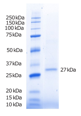 STING通過胞漿區(qū)域與CDNs結(jié)合。InvivoGen提供的重組STING蛋白對應(yīng)可溶性的胞漿結(jié)構(gòu)域(aa 137-379)R232突變型,是普遍的人源STING蛋白的同型。這個27kDa的重組蛋白產(chǎn)生自哺乳動物中國倉鼠卵巢細胞系(CHO),通過親和層析純化,不帶標(biāo)簽,能夠被市面上的商品化人源STING抗體所識別。