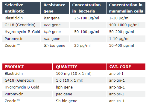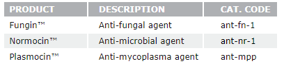InvivoGen的篩選抗生素可與其他篩選抗生素或與細胞培養(yǎng)過程中預(yù)防支原體,細菌,真菌污染的抗微生物抗生素聯(lián)合使用。有不同的規(guī)格可供選擇。