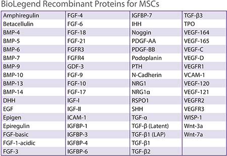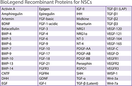 BioLegend提供多種重組蛋白,可幫助維持胚胎干細(xì)胞、誘導(dǎo)多能干細(xì)胞、造血干細(xì)胞、間充質(zhì)干細(xì)胞和神經(jīng)干細(xì)胞的多能性或誘導(dǎo)它們分化。下面我們一起了解一下重組蛋白在幾種干細(xì)胞中的應(yīng)用。