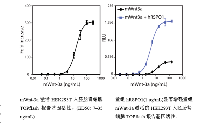 C3H10T1/2干細(xì)胞培養(yǎng)至細(xì)胞融合,使用BMP-9(20 ng/mL, Cat. No. 553102)和不同濃度的h/mSHH、或hDHH、或mIHH(Cat. No. 753502, 754602, 759802,758602)處理,將間充質(zhì)干細(xì)胞誘導(dǎo)分化為成骨細(xì)胞。使用對硝基苯磷酸酯作為底物,檢測成骨細(xì)胞標(biāo)記物堿性磷酸酶。