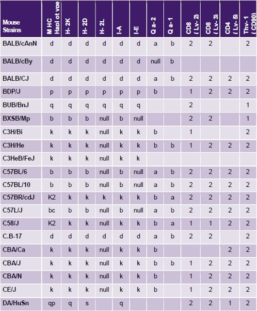 MHC分子具有高度多態(tài)性的特點,但是由于實驗室小鼠都是近交系小鼠,所以每一個品系的小鼠都具有獨特的 MHC 單倍型。不同小鼠品系的 MHC 單倍型用小寫字母(a、b、d、k、q、s等)進行命名區(qū)分,比如 BALB/c 小鼠的MHC單倍型為 H-2Kd、 H-2Dd、 H-2Ld、 I-Ad 和 I-Ed 。