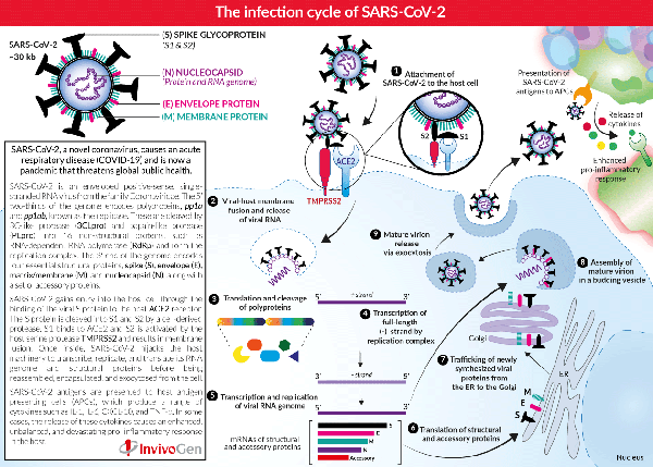 新冠肺炎已持續(xù)數(shù)月,法國天然免疫專家InvivoGen密切關注COVID-19與天然免疫相關的信息,病毒的感染周期、抗擊新冠病毒的潛在藥物靶點、可能相關的宿主免疫應答通路,以及疫苗研發(fā)需要關注的部分整理成了4篇文章與大家分享。