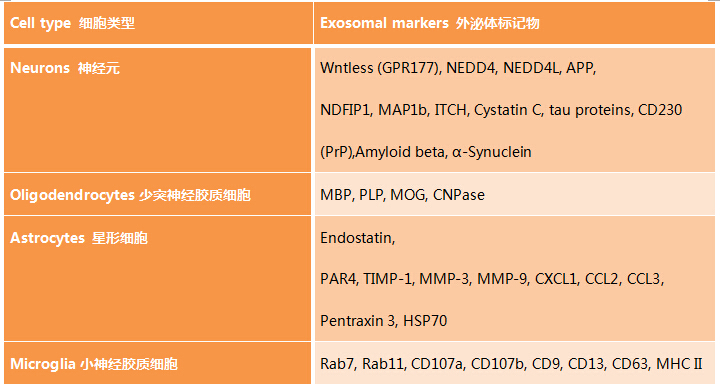 BioLegend公司可提供針對多種靶蛋白的抗體,可以鑒定來自中樞神經(jīng)系統(tǒng)中各種細胞類型的外泌體。